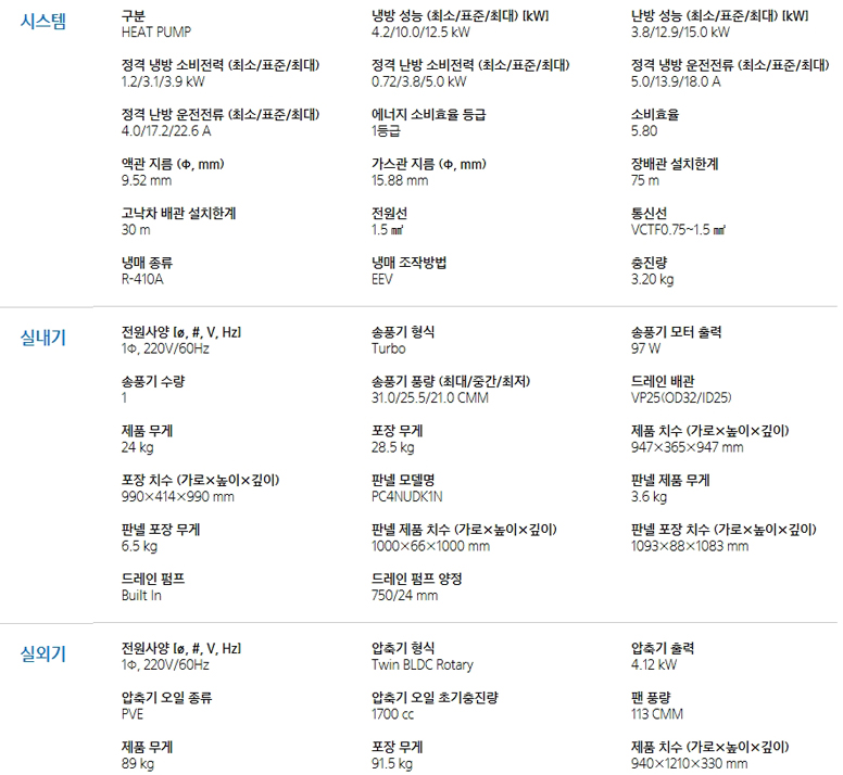 제품구성실내기+실외기+무선리모컨