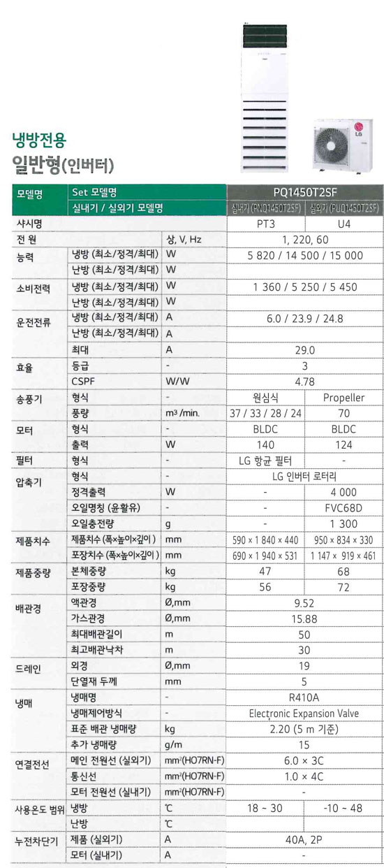 벽걸이형 5M / 스텐드형 5M / 천정형 및 58평이상 기본배관 없음